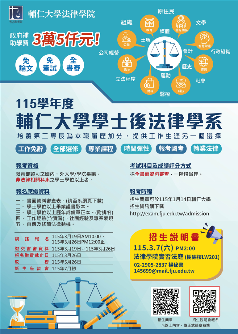 🔥115學年度輔大學士後法律學系 招生說明會報名中🌺